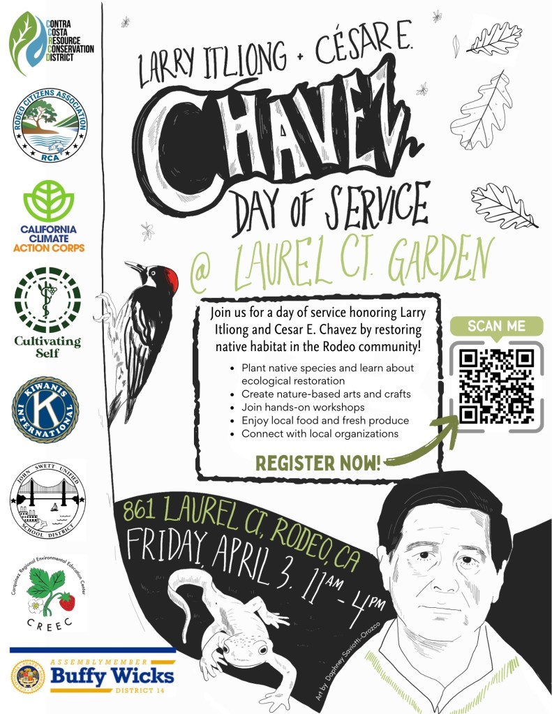 Please join the Contra Costa Resource Conservation District and the Rodeo Citizens Association in our first public workday at the new urban garden on Laurel Court. Join Assemblymember Wicks and staff for a day of gardening at this new community space in Rodeo. Be a part of the planning process and help us begin to create a space for fresh foods and pollinators! Let’s dig in together!