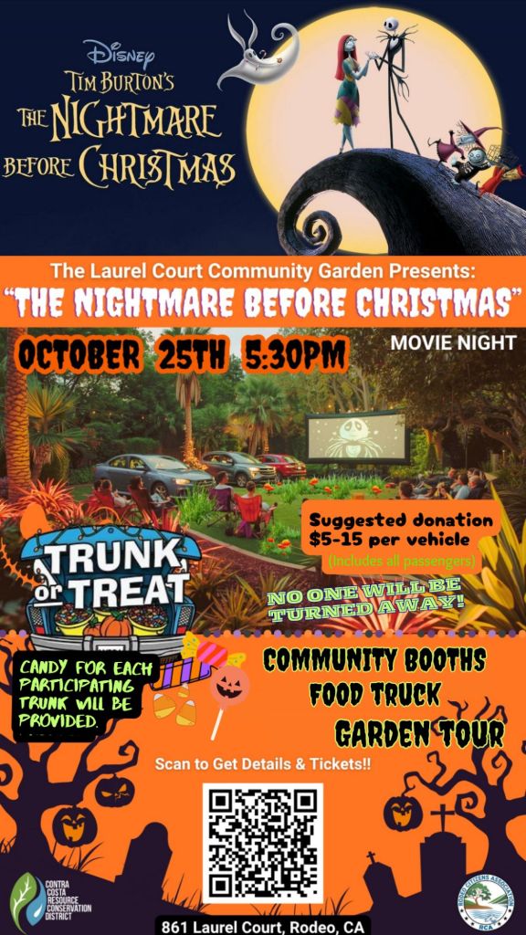 October 25th at 5:30PM – Movie Night & Trunk o’ Treat! 861 Laurel Court, Rodeo CA