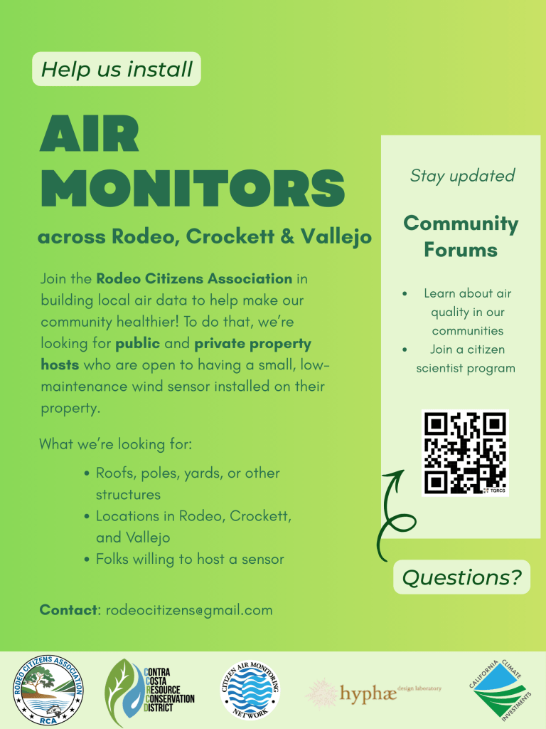 Would you be interested in having an air monitor installed on your property? Email us at rodeocitizens@gmail.com.